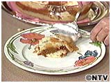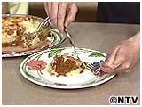 2)スプーンですくい、左手のフォークで押えるようにしてのせます(決して片手ではやらないこと)。