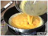 卵は1個ずつ割ってから合わせること。大きく焼いて上からソースをかけるので失敗しても気にしないで!