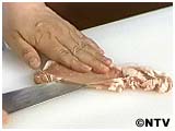 豚肉は表になる方を下にしてフライパンに入れ肉を時々動かしながら焼くこと。
