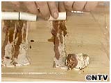 焼き上がりの目安は箸でつまんでみてねぎがしんなりしているかどうかで確認します。