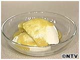 マンゴー1個を2~3cm角に切って梅酒(大さじ1~2)とともにフードカッターに入れてピュレ状にしバニラアイスクリームにかけて出来上がり。