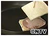 2)1枚にハムとチーズをのせ、もう1枚のパンを焼いた面を中側にしてのせます。