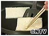 3)隣に次のパンをのせて焼き、色がついたら返して焼き、ハムとチーズをのせて、サンドした方を返して、それが焼き終わったら次のパンを焼きます。