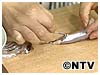 3)ワタのスミ袋をはずします(やぶれないように、しずかに)。