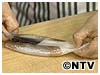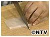 8)包丁の刃先をあてて、引き切りにします(いかの繊維そって切ります)。