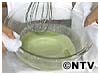 1)これが、レンジで3分かけた状態。まだ中心がシャバシャバ。ここで、一度かき混ぜてから再びレンジへ。