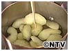 1)15分煮た状態。外側が透き通っていた中はまだ白っぽい。火からおろし30分おいて余熱で火を通す。
