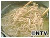 ▲ゆでそばは高温の油に入れて箸でこんもりとまとめ、そのままの形でカリッとするまで揚げてよく油をきる。