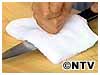 にんにくは包丁の上を直接叩くと危ないので、ぬれ布巾をかぶせてやるとよい。