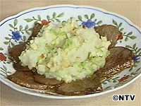 材料 牛薄切り肉(バター焼き用200g)、しょうゆ(大さじ1) 大根おろし(300g)、酢(大さじ1/2)、塩(小さじ1/3) 砂糖(大さじ1/2)、りんご(1/4個)、大根の葉(適宜) 作り方 牛肉はしょうゆをまぶしてフライパンで焼き器に盛っておきます。 大根おろしに調味料、さいの目に切ったりんご、小口切りの大根の葉を合わせ、(1)の牛肉にかけます。