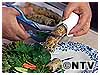 揚げ上がりはハサミで一口サイズにカットします。皮がパリッと音がしたら成功です。(ハサミでカットするのはハノイ式、このほか小さく包んで揚げるスタイルもあります)
