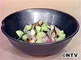 材料: 大根おろし(2カップ) 椎茸(大4枚) きゅうり(2本) 梅肉(2個分) 塩(小さじ1/2) 砂糖(大さじ1) みりん(大さじ1) 作り方 1)大根おろしは水気をしためておき、きゅうりは1cm角に切り、椎茸は焼き網で焼いてから1cm角に切ります。 2)ボールに大根おろしを入れ、調味料と梅肉を加えまぜ、切った椎茸ときゅうりをあえます。