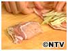 みそをうすめに塗ってからみょうがをたっぷりおき、肉を折りたたむようにして包みます。