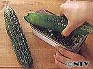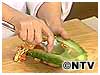 イボイボの表面の青い皮と果肉だけをすりおろす、種のまわりの皮まですりおろしてしまうとえぐみが強くなる。