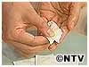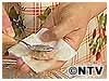 皮の上に具をのせ、皮の縁に水をつけて、頂点を合わせて三角に折る。