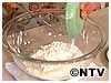 1) 薄力粉にベーキングパウダーを加え、泡立て器で混ぜる。