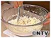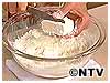 3) 水を加え、さらにナイフできるように混ぜる。(手でねらないこと)