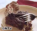 ブラウニーの粗熱がとれたら食べやすい大きさに切り分け、シナモンクリームを添えて食べます。
