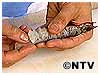 えびが丸まらないように横に2~3本切り目を入れて、身をそらせておきます。