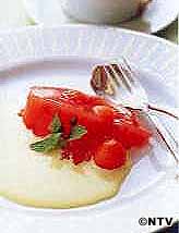 ボールなどにまとめて作り、スプーンなどで大きくすくいとってデザート皿にのせ、アングレーズソースをかけてミントの葉をあしらうのもよい。 アイスクリームと盛り合わせてもおいしい。