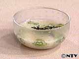 材料: 長芋(170g)、オクラ(5~6本) だし汁(1+1/2カップ)、しょうゆ(小さじ1) 塩(小さじ1/3)、みりん(小さじ1) 作り方 1)長芋はすりおろし、オクラは塩でもんでから 細かくきざんでおきます。 2)鍋にだし汁をあたため、調味料を加えて冷まします。 3)(1)の長芋をボールに移し、調味しただし汁を少しずつ 加え混ぜ、オクラを混ぜ冷やしておいた器に盛ります。