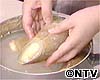 冷めたら、皮をむいて水洗いして水にしばらくつけてぬか臭さを抜く。(すぐに使わない場合でもこの状態で、水につけて冷蔵庫で保存するとよい)