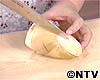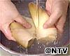 穂先を斜めに切り落として、皮に縦に切り込みを入れる。