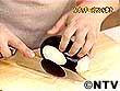 これが米なす。アクがすくなくオリーブ油との相性もよい。両端を切り落として座りをよくしておきます。