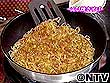 こんがり色がついたら返して裏面も焼く。(返してからは上から押さえたりしないこと、カリカリのめんになってしまいます。)