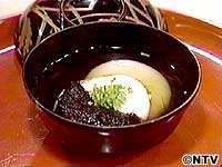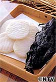 平鍋に熱湯を沸かして小判もちを並べ入れ、煮立ったら弱火にしてやわらかくゆでます。 かもじのりはボールに入れ、酒少々をふりかけておきます。 昆布とかつお節でとっただし汁4カップを鍋に入れて火にかけ、煮立ったら塩小さじ1、しょうゆ小さじ2、酒大さじ1で調味します。 温めた椀にもちを入れ、のりを添えて汁をはります。