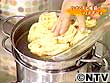 フェトチーネを鍋に入れたら、湯が沸いてくるまで菜箸でほぐしたりしないこと。 (すぐにさわらないで)