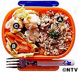 A みょうがとじゃこのチャーハン B にんじんとハムの炒め煮 短冊切りのにんじんを炒め、水少々を加えて砂糖、しょうゆで調味し、一口大に切ったハムを加えて炒め煮にする。 C 揚げシューマイ 冷凍シューマイを揚げ、レタスを敷いて詰める。
