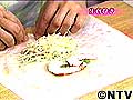 濡れたペーパーの上にとり、中央に香菜、半分に切ったえびをのせる。