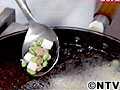 のりをスプーンにのせてたねをのせ、そっと落として揚げる。