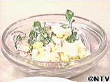 <作り方> (1)じゃが芋は半分に切って、耐熱皿に並べてラップをかけ、電子レンジ強で8~10分加熱します。 (2)じゃが芋が熱いうちに皮をむき、酢、塩、こしょうを加えて、粗くつぶします。 (3)細切りのハム、クレソンの葉、コーンの汁気をきって加えて混ぜ、マヨネーズを加えてあえます。