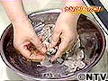 かきは海水程度の塩水でヒダの間までていねいに洗い、さらに流水で洗います。