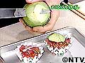 変色しないようにいただく直前に皮を少しむいて実をそいでのせる。