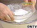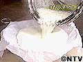 (2)モロモロの状態になったらぬれ布巾を敷いたザルにあける。
