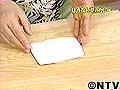 (3)水気をきって、厚さが1cmの四角形になるように布巾に包んで重石をする。