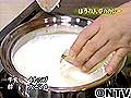 (1)鍋に牛乳を入れて強火にかけ、沸騰直前に酢を加えて泡立て器でかき混ぜる。
