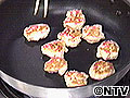ふわふわのだんごのたねを少し残して、フライパンで焼いても美味しい。 おろししょうがとしょうゆを添えてどうぞ。