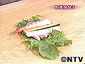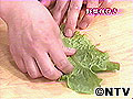 (1)サンチュの葉脈を軽くつぶす。