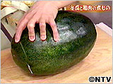 これが冬瓜(とうがん)。旬は夏、味も香りも淡白で体を冷やす作用があるといわれ暑気払いの食べ物。風通しのよいところにおくと冬まで保存できることからこの名が…。