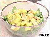 ■ 材料 ・サラダほうれん草(1わ) ・ゴールドキーウィ(2個) ・1/3セパレートドレッシング(適量) ・クルトン(適量) ■ 作り方 (1)サラダほうれん草は洗って、3~4cm長さに切り、キーウィは5ミリ厚さのいちょう切りにして器に盛り、ドレッシングをかけてクルトンを散らします。