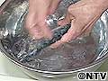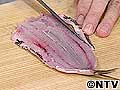 (1) ウロコをとる 新鮮なものほどウロコがびっしりついている。いわしのウロコは、頭に向かって爪で掻くようにしてとり、水で洗い流す。