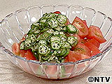 ■ 材料 ・トマト(2個) ・オクラ(4~5本) ・ノンオイルドレッシング・ 梅づくし(適量) ■ 作り方 (1)トマトはざく切りにして器に盛って冷やしておきます。 (2)オクラは塩みがき(塩をこすりつけて産毛をとる)をしてから小口に切り、ドレッシングを加えて混ぜます。 (3)(1)に(2)をかけます。