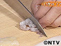 (2)足と目の部分を切り離し、足は細かく刻み、ワタをしごいて混ぜておく。