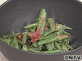 ■ 材料 ・いんげん(1束) ・梅干し(1個) ・削りがつお(1袋) ・しょうゆ(少々) ・ごま油(大さじ1) ■ 作り方 (1)いんげんは熱湯でゆで、冷水にとり、斜め切りにし、梅干しは種を除いてたたきます。 (2)ボールに叩いた梅干し、しょうゆ、ごま油を加えて混ぜ、削りがつお、いんげんを加えてあえます。