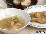 鶏肉は表面をこんがり揚げてから煮込みます。