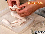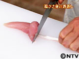 ささ身の筋の両側に包丁を入れる。